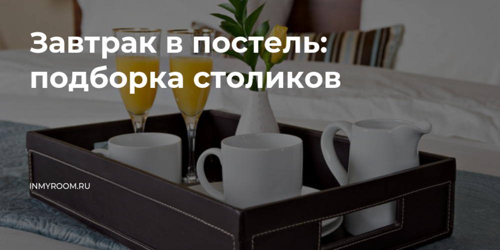 Деревянный столик на ножках с выемками для посуды от бразильского производителя. Выемки оказались очень удобным добавлением - чашки не норовят соскользнуть в кровать.